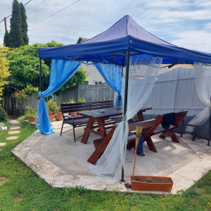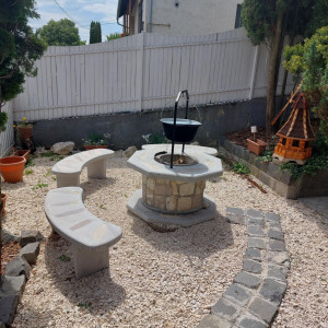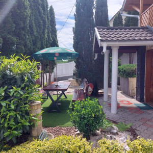 Telken 1 garázs, 1 fedett autóbeálló, 3 fedetlen autóbeálló, elektromos kapu rendszer, halastó, grillezésre-nyársalásra alkalmas terület.
