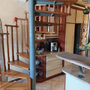 Alsó szinten 2 szoba és egy jelenleg gardrób szobaként üzemelő helyiség, konyha+étkező, tárolóhelyiség, wc, garázs került kialakitásra.