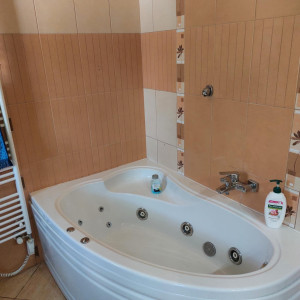 Felső szinten 3 szoba, fürdőszoba (hidromasszázs zuhanykabin és jacuzzi funkciós fürdőkád)-wc, erkély található.